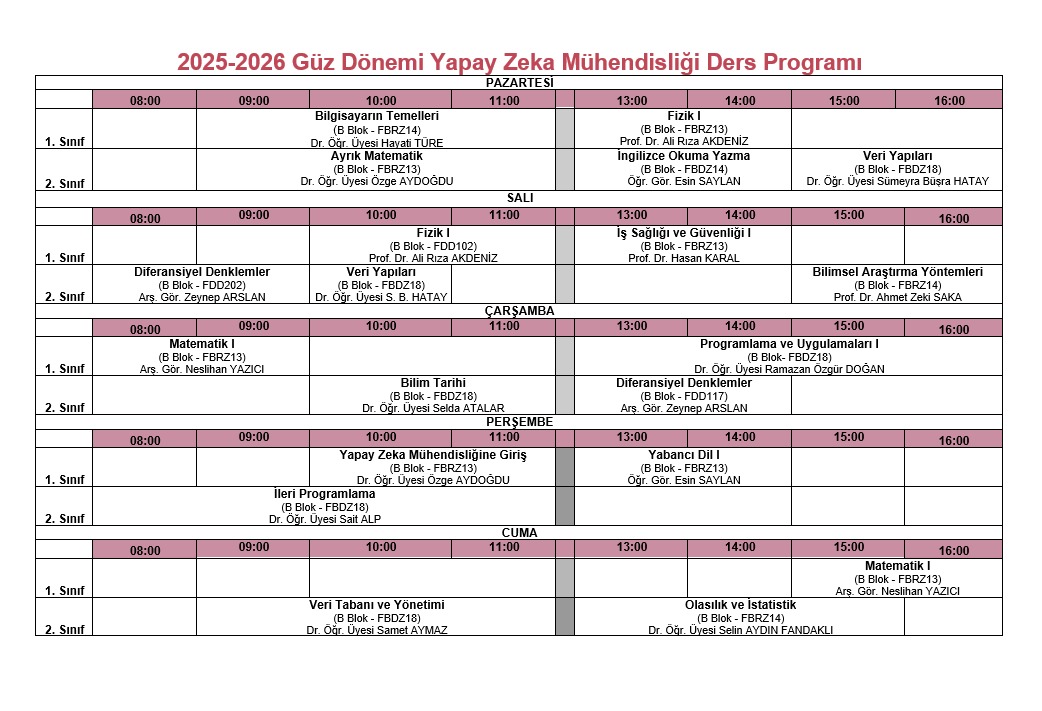 Yapay Zeka Mühendisliği Bölümü Ders Programı Güncellenmiştir.
