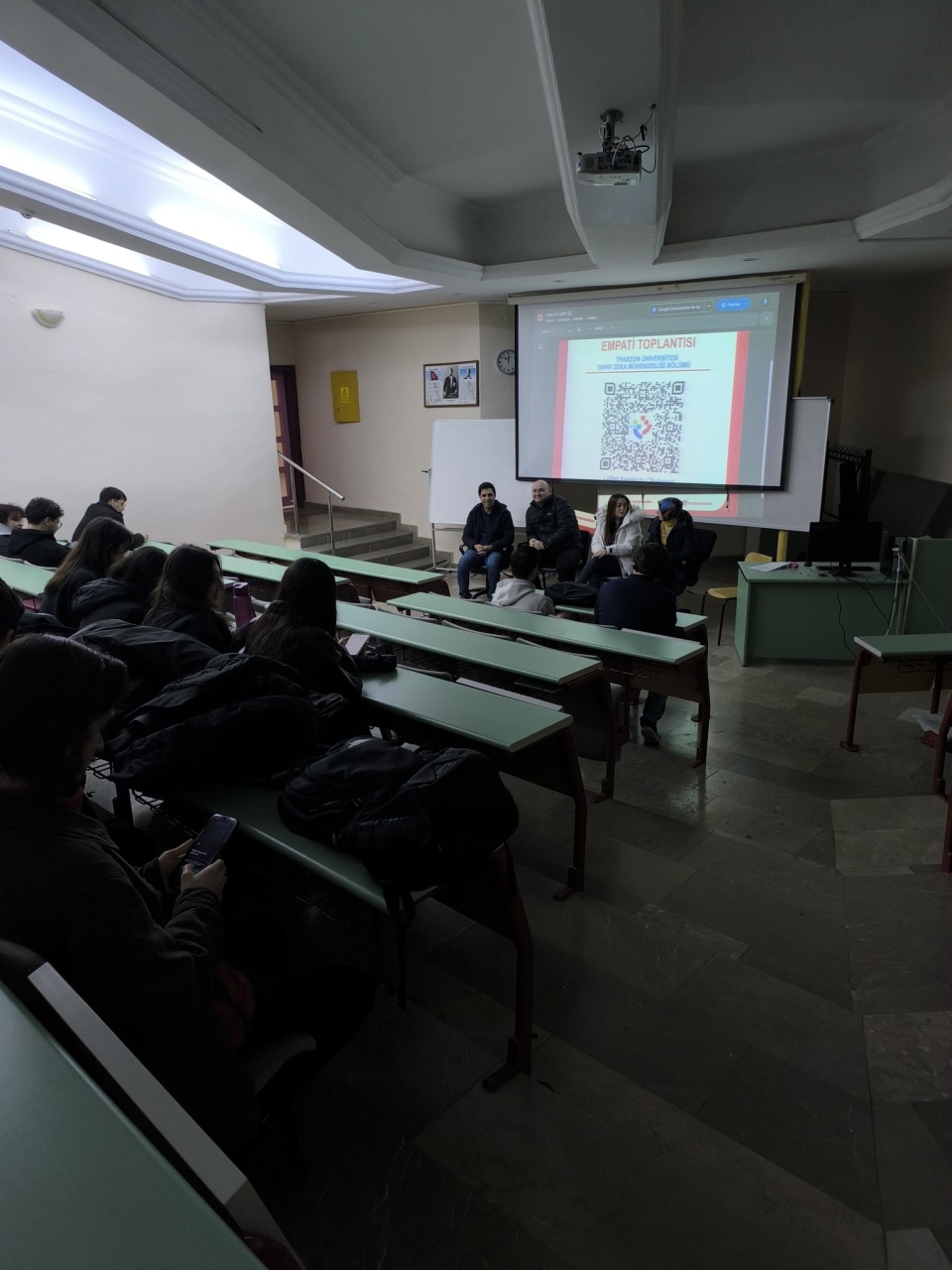 Trabzon Üniversitesi Bilgisayar ve Bilişim Bilimleri Fakültesi Yapay Zeka Mühendisliği Bölümü kapsamında, 1. ve 2. sınıf öğrencilerinin katılımıyla bir empati toplantısı gerçekleştirildi. Bölüm akademik kadrosu ile öğrencileri bir araya getiren etkinlikte; eğitim süreci, ders içerikleri, akademik beklentiler, sosyal olanaklar ve öğrencilerin karşılaştığı güncel sorunlar üzerine açık bir iletişim ortamı oluşturuldu.